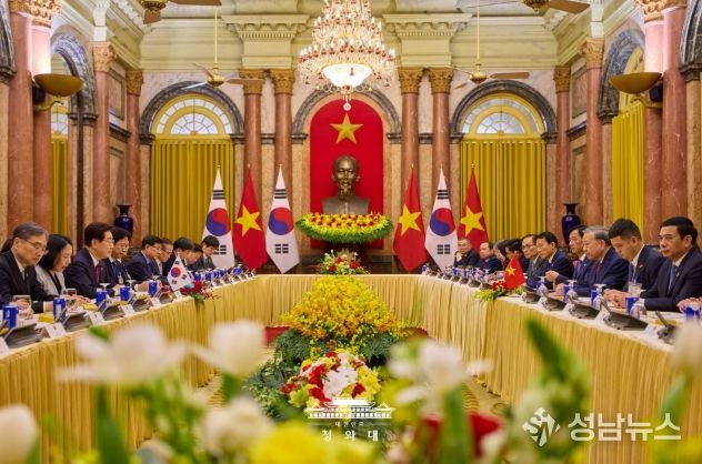 베트남을 국빈 방문 중인 이재명 대통령은 22일(현지시간) 오후 베트남 국가주석궁에서 또 럼 당서기장 겸 국가주석과 정상회담을 갖고, 양국 간 포괄적 전략 동반자 관계 발전 방안과 지역·국제 정세 등에 대해 심도 있게 논의했다고 이규연 청와대 홍보소통수석이 서면 브리핑했다.