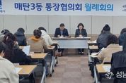 (성남뉴스) 수원시 영통구 매탄3동은 지난 24일 시정 및 동정 소식 공유를 위한 2월 통장협의회 월례회의를 개최했다. 이날 회의에서는 '새빛 생활비 패키지' 사업 중 하나인 △여성 청소년 생리용품 보편 지원 사업을 비롯하여 △초등 저학년 등하교 동행 돌봄 서비스, △어르신 스포츠상품권 지급 사업 등 시민 홍보가 필요한 주요 사업들을 공유했다. 아울러 ‘제9회 전국동시지방선거’를 대비해 통장의 선거운동 금지와 정치적 중립 의무 등 '공직선거법' 관련 유의 사항을 공유하고 준수를 당부했다. 김병목 매탄3동장은 “주민과 가장 가까운 곳에서 소통해주시는 통장님들의 노고에 감사드린다”며 “앞으로도 통장협의회와의 긴밀한 협력체계를 유지하여 살기 좋은 매탄3동 조성을 위해 노력하겠다”고 말했다.
