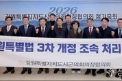 (성남뉴스) 2026년 강원특별자치도시군의회의장협의회 정기총회가 13일 춘천 세종호텔에서 열렸다. 이날 정기총회에서 최익순 협의회장(강릉시의회 의장)은 선진 지방의회 구현을 위해 노력해 온 한해를 돌아보고 공통 관심사에 대한 협업체제 강화 및 지방의정 발전 방안을 모색했으며, '강원특별법 3차 개정 조속 처리 촉구 건의문', '철원·춘천·홍천·횡성·원주 철도 '제5차 국가철도망 구축계획'반영 촉구 건의문', '지방교육자치법 개정에 따른 양양교육지원청 신설 촉구 건의문'을 의결하며 지역 현안 공동대응에 나섰다. 특히 최익순 협의회장은 '강원특별법 3차 개정 조속 처리 촉구 건의문'을 제안, '강원특별법 3차 개정안'이 발의한지 1년 6개월이 지나도록 계류되어 있어 정부와 국회의 특별자치도 정책에 대한 국민적 신뢰와 국가 균형발전 전략의 지속 가능성이 흔들릴 수 밖에 없다고 지적하며 ▲ 국회의 '강원특별법 3차 개정안' 즉시 심사 및 처리 촉구 ▲ 정부의 권한 이양과 규제 혁신이 포함된 제도 개선의 뒷받침과 특별법 개정 적극 협력 ▲ 강원특별자치도가 균발전의 실질적 모델로 자리잡을수 있는 후속 조치와 실행 계획