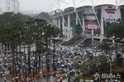 ‘BTS 월드투어 아리랑 in 고양’이 열리는 고양종합운동장, 9일 비가 내리는 궂은 날씨에도 공연장과 인근 상가까지 BTS 콘서트를 즐기기 위해 방문한 국내외 관람객으로 가득찼다.