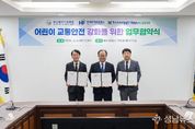 부산광역시교육청은 지난 6일 오후 시교육청 회의실에서 어린이 교통사고 예방과 안전한 통학환경 조성을 위해 한국주택금융공사, 한국도로교통공단 tbn부산교통방송과 ‘어린이 교통안전 강화를 위한 업무 협약’을 체결했다. 이번 협약을 통해 세 기관은 어린이 교통안전 물품 지원 및 통학환경 개선 사업을 수행함에 있어 상호 협력하고, 어린이 교통사고 예방과 지역사회 안전문화 확산에 힘을 모으기로 했다. 주요 내용은 ▲초등학교 대상 교통안전용품 지원 ▲통학로 안전환경 조성 ▲유·초등학교 대상 교통안전 홍보 방송 및 캠페인 등으로 각 기관은 사업 추진 과정에 유기적인 협력관계를 유지할 계획이다. 김석준 교육감은 “우리 교육청은 학생과 학부모가 안심할 수 있는 안전한 등하굣길 조성을 위해 지속적으로 노력하고 있다”며, “이번 협약을 계기로 한국주택금융공사, 한국도로교통공단 tbn교통방송과 긴밀히 협력하여 어린이 교통안전 강화에 최선을 다하겠다”고 말했다.