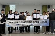 대구 동구청은 지난달 31일 동구청년센터에서 ‘청년 창업기업 사무실 임차료 지원사업’ 선정 기업들과 협약을 체결하고 본격적인 지원에 나섰다. 임차료 지원사업은 공모를 통해 관내 7년 이내 초기 창업기업 9개사를 최종 선정했으며, 선정 기업들은 최대 10개월간 50만원 한도 내에서 월 임차료의 50%를 지원받게 된다. 임차료 지원 사업은 아이디어와 기술력을 보유하고도 초기 자본 부족과 고정비 부담으로 어려움을 겪는 청년 창업가들에게 월 임차료의 일정 부분을 지원해 폐업률을 낮추고 성장을 돕는 맞춤형 지원 정책이다. 지난해 처음 시행돼 15개 창업기업을 지원했으며, 청년 창업가들이 절감된 비용을 사업에 재투자해 기업 경쟁력을 강화하기도 했다. 김태운 동구청장 권한대행은 “청년들이 우리 지역 사회에 안착하고 성공적인 창업가로 성장할 수 있도록 꾸준히 돕겠다”고 말했다.