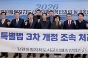 (성남뉴스) 2026년 강원특별자치도시군의회의장협의회 정기총회가 13일 춘천 세종호텔에서 열렸다. 이날 정기총회에서 최익순 협의회장(강릉시의회 의장)은 선진 지방의회 구현을 위해 노력해 온 한해를 돌아보고 공통 관심사에 대한 협업체제 강화 및 지방의정 발전 방안을 모색했으며, '강원특별법 3차 개정 조속 처리 촉구 건의문', '철원·춘천·홍천·횡성·원주 철도 '제5차 국가철도망 구축계획'반영 촉구 건의문', '지방교육자치법 개정에 따른 양양교육지원청 신설 촉구 건의문'을 의결하며 지역 현안 공동대응에 나섰다. 특히 최익순 협의회장은 '강원특별법 3차 개정 조속 처리 촉구 건의문'을 제안, '강원특별법 3차 개정안'이 발의한지 1년 6개월이 지나도록 계류되어 있어 정부와 국회의 특별자치도 정책에 대한 국민적 신뢰와 국가 균형발전 전략의 지속 가능성이 흔들릴 수 밖에 없다고 지적하며 ▲ 국회의 '강원특별법 3차 개정안' 즉시 심사 및 처리 촉구 ▲ 정부의 권한 이양과 규제 혁신이 포함된 제도 개선의 뒷받침과 특별법 개정 적극 협력 ▲ 강원특별자치도가 균발전의 실질적 모델로 자리잡을수 있는 후속 조치와