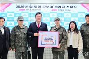 (성남뉴스) 인천 미추홀구는 13일 설 명절을 맞아 국토방위와 국가안보를 위해 헌신하는 군 장병들의 노고를 격려하기 위해 미추홀구 관교동 승학산에 위치한 육군 제7873부대 2대대에 격려금을 전달했다. 구는 지역 안정과 국토방위를 위해 헌신하는 장병들을 격려하고 관·군의 화합을 도모하고자 지난해에 이어 올해도 격려금을 마련했다. 특히 구는 지역방위 작전·교육 훈련·부대 운영지원 등을 위해 올해 약 1억 3천만 원의 예비군 육성지원 보조금을 편성했다. 이영훈 구청장은 “국토방위는 물론 각종 지역사회 안전을 책임지는 군 장병들에게 깊은 감사를 드린다.”라며, “앞으로도 나라를 위해 헌신하는 군 관계자들을 위한 다양한 지원책을 지속적으로 강구 할 것”이라고 말했다.
