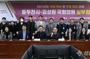 (성남뉴스) 동두천시는 23일 국회의원회관에서 김성원 국회의원과 '2027년도 국비 확보 및 주요 현안 건의를 위한 실무협의회'를 열고, 지역 발전을 위한 전방위적인 국비 확보 체제에 돌입했다고 밝혔다. 이번 협의회는 지방재원만으로는 대규모 숙원사업 추진에 한계가 있다는 판단에 따라 마련됐다. 시는 지역 도약을 위해 중앙정부와 국회의 도움이 무엇보다 중요하다고 보고, 선제적으로 국회와의 유기적인 공조 체계 구축에 나섰다. 이날 회의에서는 2027년도 국비 지원이 필수적인 핵심 사업을 의원실에 전달하고 구체적인 예산 확보 전략을 심도 있게 논의했다. 주요 건의 사업은 시민 생활과 직결된 기반시설 확충에 초점을 맞췄다. 원도심 노후 가로환경 개선과 주거 쇠퇴 지역 기반시설 조성을 위한 정주 여건 개선 사업, 하천 오염 방지를 위한 기초 하수도 시설 정비, 관광지 확대 개발에 대비한 교통·주차 인프라 확충 등이 포함됐다. 아울러 시는 반환공여구역 개발과 인구감소지역 재지정 대응을 최우선 현안으로 제시했다. 동두천시는 지난 75년간 시 면적의 42%를 미군 공여지로 제공해 왔으며, 이로 인한 연간 경제적 손실이 5,2