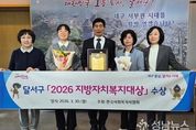 대구 달서구가 한국사회복지사협회가 주관하는‘2026 지방자치복지대상’에서 기초자치단체 부문 대상을 수상하며 복지 선도도시로서의 위상을 다시 한번 입증했다. 이번 시상은 지난 30일 서울 국회박물관에서 열린‘제20회 사회복지사의 날’ 기념식에서 진행됐으며, 사회복지사 처우개선과 지역복지 발전에 기여한 지방자치단체의 정책 성과를 종합적으로 평가해 수여됐다. 달서구는 사회복지 종사자 처우개선을 위한 조례를 선제적으로 제정하고, 세 차례의 실태조사를 실시하는 등 데이터 기반 정책을 추진해 온 점에서 높은 평가를 받았다. 또한 2026년 전체 예산 1조 1,958억 원 중 73.3%에 해당하는 8,678억 원을 사회복지 분야에 편성하며 복지 사각지대 해소와 종사자 지원에 지속적으로 투자해 왔다. 이와 함께 보건복지부 인건비 가이드라인 준수, 상해보험료 및 보수교육비 지원, 장기근속 휴가제 도입 등 근무환경 개선 정책을 추진해 현장 만족도를 높였다. 아울러 통합돌봄 전담부서 신설, 노인종합복지관 확충, 주거복지센터 및 아이꿈센터 운영 등 조직과 인프라를 확대해 서비스의 전문성과 접근성을 강화했다