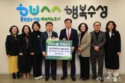 (성남뉴스) 대구 수성구 희망나눔위원회(회장 배영호)는 지난 23일 수성구청을 방문해 화재나 수해 등 갑작스러운 재난으로 어려움을 겪는 주민들을 돕기 위한 성금 500만 원을 전달했다. 수성구 희망나눔위원회는 2007년 전국 최초로 구성된 민간 사회안전망으로, 공적 지원만으로는 충분한 도움을 받기 어려운 복지 사각지대 해소를 위해 다양한 봉사와 나눔 활동을 이어오고 있다. 지난해에 이어 올해도 회원들의 뜻을 모아 성금을 마련했다. 배영호 회장은 “갑작스러운 재난으로 삶의 터전을 잃고 어려움을 겪는 주민들에게 작은 위로가 되고, 다시 일어설 수 있는 힘이 되기를 바란다”고 전했다. 김대권 수성구청장은 “따뜻한 마음을 나눠주신 수성구 희망나눔위원회에 깊이 감사드리며 재난 피해를 입은 주민들에게 희망을 전할 수 있도록 보내주신 성금을 뜻깊게 사용하겠다”고 말했다.