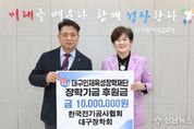 (성남뉴스) 대구시교육청은 2월 23일, 한국전기공사협회 대구장학회에서 대구인재육성장학재단에 장학금 1천만 원을 기탁했다고 밝혔다. 한국전기공사협회 대구광역시회(회장 이병철)는 2011년 11월 대구장학회를 설립하여 경제적 사정이 어려운 전기관련학과 고등학생 및 대학생을 지원해오고 있으며, 지역 인재육성에 더욱 도움이 되고자 2025년에 이어 2년째 대구인재육성장학재단에 기탁하게 됐다. 이병철 회장은 “어려운 환경에서도 학생들이 재능을 키워나갈 수 있도록 지원하는데 보탬이 되길 바란다.”는 뜻을 전했고, 류석종 이사장은 “업계 발전을 위한 인재 육성 뿐 아니라, 더 나아가서 다양한 분야의 인재가 배출될 수 있도록 적극 지원하겠다.”고 했다. 강은희 교육감은 “기탁해주셔서 감사드리며, 기탁금은 어려운 학생들이 학업에 집중할 수 있도록 지원하는데 최선을 다하겠다.”며 고마움을 표시했다.