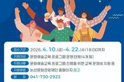 논산문화관광재단은 지역 문화시설과 자원을 활용한 지속가능한 문화예술교육 기반 구축을 위해 ‘2026 지역형 문화예술교육 지원사업’ 운영단체를 공개 모집한다. 이번 공모는 논산에서 활동하는 예술단체를 발굴·지원하고, 지역자원과 연계한 문화예술교육 프로그램 운영을 통해 시민 참여 확대와 문화 향유 기회 증진을 도모하고, 특히 지역축제와의 연계를 통해 일상 속 문화예술 향유 기회를 더욱 넓히는 데 목적이 있다. 공모 대상은 논산에서 활동하는 예술단체로, 총 4개 단체를 선정해 문화예술교육 프로그램의 기획 및 운영을 지원한다. 선정 단체는 논산 지역 내 문화기반시설 및 공공시설 등에서 프로그램을 운영하게 된다. 논산문화관광재단 지진호 대표이사는 “지역 문화예술교육은 시민의 삶의 질을 높이는 중요한 기반”이라며 “이번 사업을 통해 지역 예술단체의 역량이 강화되고, 시민과 예술이 자연스럽게 어우러지는 계기가 되길 바란다”고 밝혔다. 참여를 희망하는 단체는 4월 10일부터 4월 22일까지 논산문화관광재단 공지사항 참고해 신청하면 된다.