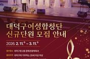 (성남뉴스) 대전 대덕구가 지역 문화예술 활성화를 위해 여성합창단 신규 단원을 모집한다. 구는 3월 11일까지 ‘대덕구여성합창단’ 일반단원 15명 이내를 선발한다고 밝혔다. 지원 자격은 대덕구에 거주하는 20세 이상 여성으로, 성악 경험과 소질을 갖춘 주민이면 지원할 수 있다. 대덕구 여성합창단은 매주 월·목요일 오전 10시부터 12시까지 정기연습을 진행하고 있으며, 정기연주회와 힐링음악회, 구 행사 찬조공연 등 다양한 문화예술 활동에 참여하고 있다. 지원자는 응시원서와 관련 서류를 대덕구청 문화관광체육과로 업무시간(오전 9시~오후 6시) 내 방문 제출하면 된다. 오디션 및 면접은 3월 16일 오전 10시 송촌동 행정복지센터 지하 1층에서 진행되며, 오디션 당일 악보를 지참해 자유곡 1곡을 부르는 방식으로 실시된다. 대덕구 관계자는 “대덕구 여성합창단은 지역을 대표하는 문화예술단체로 각종 공연과 행사에서 구민과 함께 호흡해 왔다”며 “음악을 사랑하는 주민들의 많은 관심과 참여를 바란다”고 말했다. 자세한 사항은 대덕구 누리집 공고문을 확인하거나 대덕구청 문화관광체육과로 문의