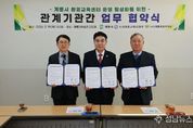 (성남뉴스) 충남 계룡시는 지난 19일 계룡대학습관에서 논산계룡교육지원청, 환경교육센터(계룡에코리더스)와 함께 지역 환경교육 활성화를 위한 업무협약을 체결하고 현판 제막식을 개최했다. 이날 행사에는 이응우 시장을 비롯해 계룡시 관계자, 논산계룡교육지원청 교육장, 계룡시의회 의장 및 시의원, 계룡시 환경교육센터 관계자 등 총 50여 명이 참석해 자리를 빛냈다. 행사는 협약서 서명을 시작으로 기관별 인사말씀과 축사, 기념촬영 순으로 진행됐으며, 현판 제막식을 통해 본격적인 협력의 출발을 대내외에 알렸다. 이번 협약은 지역 환경교육 협력 방안을 공동으로 모색하고 지속 가능한 환경교육 체계를 구축하기 위해 마련됐다. 각 기관은 ▲환경교육 프로그램 개발 및 운영 협력 ▲지역 특성을 반영한 환경교육 활성화 ▲환경 인식 제고를 위한 공동 사업 추진 등 다양한 분야에서 상호 협력하기로 했다. 특히, 학교와 지역사회가 연계된 환경교육 기반을 조성하고, 미래세대의 환경 감수성과 실천 역량을 높이기 위한 역할과 비전을 함께 제시했다는 점에서 의미를 더했다. 시 관계자는 “이번 협약을 통해 지역