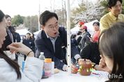 진교훈 서울 강서구청장이 주말도 반납한 채 현장 소통에 집중했다. 진 구청장은 4일 방화근린공원에서 열린 ‘강서봄빛페스타’를 찾아 행사장 안전 관리와 관람객 동선, 프로그램 구성 등 축제 운영 전반을 직접 챙겼다. 일찍부터 축제장을 찾은 진 구청장은 3시간 가까이 현장을 지켰다. 현장 곳곳을 다니며 주민들에게 다가가 친근하게 인사를 건네고 사진 촬영 요청에도 흔쾌히 응했다. 아이들과 함께 보드게임을 하고 사회자의 요청에 무대에 올라 김연자의 아모르파티에 맞춰 춤을 추는 등 격의 없이 어울렸다. 이날 방화근린공원은 ‘강서봄빛페스타’를 찾은 연인과 친구, 가족 단위 관람객들로 장사진을 이뤘다. 만개한 벚꽃과 축제를 즐기려는 관람객들로 발 디딜 틈이 없었다. 체험 부스와 푸드트럭 앞에는 차례를 기다리는 줄이 길게 늘어섰고, 축제장을 찾는 관람객들의 발길이 끊이지 않았다. ‘강서봄빛페스타’는 이날 개막식을 시작으로 오는 19일까지 계속된다. 매일 저녁 공원 일대를 밝히는 오색 경관 조명과 만개한 벚꽃이 화려한 장관을 연출한다. 진교훈 구청장은 “축제장을 찾아주신 강서구