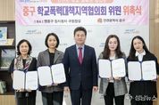 인천시 중구는 ‘학교폭력으로부터 안전한 교육환경 조성’을 위해 ‘학교폭력대책지역협의회’의 신규 위원 4명을 위촉했다고 3일 밝혔다. ‘학교폭력대책지역협의회’는 인천 중구가 학교폭력 예방을 위한 학부모들의 현장감 있는 의견을 수용하고자 운영 중인 협의체로, 이번 신규 위원을 포함해 총 17명이 위원으로 참여하고 있다. 이번에 위촉된 신규 위원은 ▲인천영종고등학교 운영위원 박영희 ▲인천운서중학교 학부모회 김명성 ▲인천영종중학교 학부모회 서경미 ▲인천중산고등학교 학부모회 전영아 총 4명의 학부모다. 이들 신규 위원은 앞으로 지역사회 기반의 협력체계를 바탕으로 학교폭력 예방 활동과 청소년 보호 정책 논의에 참여하게 된다. 한편, 위촉식은 지난 2일 오후 제2청사(영종구 임시청사) 구청장실에서 진행됐다. 특히 김정헌 중구청장과 위원들은 협의회의 운영 방향과 역할은 물론, 지역 청소년의 건강한 성장환경 조성을 위한 다양한 의견을 공유하는 시간을 가졌다. 중구는 앞으로도 관계기관, 지역 주민과의 긴밀한 협력을 통해 학교폭력 예방 체계를 단단히 다지고, 대응 역량을 지속 강화해 나갈 방침이다. &nb