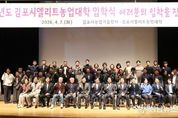 김포시는 지난 4월 7일 김포아트홀에서 신입생과 내빈 등 150여 명이 참석한 가운데 ‘2026학년도 제19기 김포시엘리트농업대학 입학식’을 개최했다. 올해로 19기를 맞이한 김포시엘리트농업대학은 지역 농업의 경쟁력을 높이고 농촌 혁신을 주도할 전문 농업 인력을 양성하기 위해 시에서 운영하는 대표적인 장기 교육 과정이다. 이번 기수에는 급변하는 농산물 시장과 농업의 디지털 대전환 흐름에 대응하기 위해 인공지능(AI) 농업과, 농식품가공과 작물재배과 등 3개 학과가 운영된다. 특히 올해 신설한 ‘인공지능(AI) 농업과’는 스마트 팜 기술과 데이터 기반의 지능형 농업 경영 기법을 집중적으로 다루어, 김포 농업의 미래를 선도할 실무형 인재 육성을 목표로 하고 있다. 이날 행사는 1부 식전 공연을 시작으로 2부 입학식 본행사, 3부 오리엔테이션 및 전문가 특강 순으로 진행됐다. 신입생 대표 송창근(인공지능 농업과) 학우는 입학 선서를 통해 새로운 도전과 성실한 학업 이수를 다짐하며 배움에 대한 뜨거운 의지를 보였다. 이어지는 3부 문화 특강에서는 이화여대 평생교육원 김영아 교수가 ‘지금 여기 참 괜찮은 나