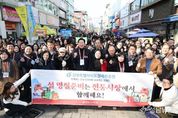 (성남뉴스) 강원특별자치도춘천교육지원청은 2월 12일, 춘천시 온의동 풍물시장에서 설 명절을 앞두고 전통시장 방문의 날 행사를 실시했다. 이번 행사는 소비심리 위축으로 어려움을 겪고 있는 전통시장 및 지역경제를 활성화하고 공공기관과 지역 주민 간의 소통 및 상생문화 확산에 기여하기 위하여 추진됐다. 교육지원청 직원들은 풍물시장에서 명절 준비 물품과 각종 생활용품을 구입하고, 시장 상인들과 소통하는 등 전통시장 장보기 활동에 적극 동참했다. 장진호 교육장은 “이번 행사가 어려움을 겪고 있는 전통시장 상인들에게 조금이나마 도움이 되길 바라며, 앞으로도 지역사회와 함께하는 다양한 활동을 지속적으로 추진해 나가겠다.”고 밝혔다.
