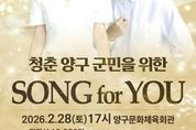 (성남뉴스) 양구문화재단은 다가오는 봄을 맞아 양구군민의 문화 향유 기회를 확대하고 지역에 활력을 불어넣기 위해 2월 기획 콘서트 ‘SONG FOR YOU’양구군민 콘서트를 개최한다. 이번 공연은 오는 2월 28일 오후 5시, 양구문화체육회관에서 열리며, 남녀노소 모두에게 사랑받는 국내 최정상급 아티스트들이 무대를 꾸밀 예정이다. 출연진으로는 독보적인 가창력으로 ‘미스트롯’초대 진(眞)에 오른 송가인과 ‘미스터트롯2’에서 깊은 감성으로 주목받은 트롯 샛별 송민준이 참여해 세대를 아우르는 감동의 무대를 선사한다. 이번 공연은 예매 시작과 동시에 군민들의 뜨거운 관심을 받았다. 1차 예매가 시작된 당일 전체 좌석의 80%가 넘는 예매율을 기록하는 등 높은 호응을 보이며, 군민 문화 향유에 대한 수요와 기대감을 다시 한 번 확인하는 계기가 됐다. 공연 관람료는 전석 12000원이지만, 관람객에게는 현장에서 10000원 상당의 양구사랑상품권을 환급해 실질적으로 2000원의 관람료로 공연을 즐길 수 있다. 티켓 예매는 2단계로 진행된다. 1차 예매는 2월 10일부터 22일까지 양구군민을 대상으로