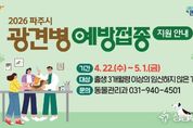 파주시는 반려견을 동반한 야외 활동이 잦아지는 봄을 맞아 오는 4월 22일부터 5월 1일까지 생후 3개월 이상의 임신하지 않은 개를 대상으로 광견병 예방접종을 실시한다. 광견병은 바이러스에 의해 사람과 동물 모두에게 감염될 수 있는 인수공통전염병으로, 잠복기가 상당히 길고 증세가 나타날 경우 치사율이 매우 높다. 때문에 사람과 반려동물 모두를 위해 반려견은 매년 1회 반드시 예방접종할 것을 적극 권장하고 있다. 시는 광견병 예방 백신 7,000마리분을 무상 지원하며, 예방접종을 희망하는 반려견 보호자는 36개 지정 동물병원을 방문해 시술비 1만 원만 부담하면 접종이 가능하다. 참여 동물병원 목록은 파주시청 누리집에 게시된 공고문을 통해 확인할 수 있다. 동물병원이 없는 읍면 지역은 시에서 직접 수의사를 파견해 순회 접종을 진행하며, 이 경우 접종비 전액을 시에서 지원할 방침이다. 읍면지역 순회 접종 일정은 해당 읍면 행정복지센터 산업팀에 문의하면 된다. 아울러 파주시는 야생동물의 광견병 전파를 막기 위해 너구리 등 야생동물이 자주 출몰하는 관내 야산에 광견병 미끼 백신을 살포하는 사업도 지속 추진하