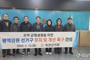 (성남뉴스) 충북 옥천군의회는 지난 10일 의원간담회실에서 긴급회의를 개최하여, 지역 균형성장을 위한 광역의원 선거구 유지와 합리적인 공직선거법 개선을 촉구하는 건의안을 채택했다. 옥천군의회는 이번 건의안을 통해 정부의 국가균형성장 기조와는 달리, 현행 광역의원 선거구 획정 제도가 인구 중심의 획일적인 기준에 머물러 농촌 및 인구감소지역의 특수한 현실을 충분히 반영하지 못하고 있다고 지적했다. 헌법재판소가 2018년 인구편차 기준을 3대 1로 강화하고, '공직선거법' 제26조에 따른 읍·면·동 분할 금지 원칙이 적용됨에 따라 옥천군은 광역의원 선거구가 단일 선거구로 축소ㆍ통합될 위기에 놓여 있다. 이로 인해 현재 2석인 광역의원 정수가 1석으로 축소될 가능성이 큰 상황이다. 특히, 선거구 축소ㆍ통합이 현실화될 경우 지역의 다양한 민의를 대변할 통로를 차단하고 주민 의견 수렴을 구조적으로 어렵게 만들며 도시와 농촌 간 정치적 영향력 격차를 심화시켜 국가균형발전의 근간을 훼손하는 결과를 초래할 것이라고 밝혔다. 이날 건의안에는 ▷광역의원 선거구 획정 시 인구 기준뿐만 아니라 지리적 특성, 교통 여건 등