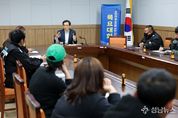 (성남뉴스) 영암군이 20일 삼호읍행정복지센터에서 ‘소통의 창을 여는 시간, 목요 대화’를 열어 배달대행기사 등 배달업 종사자들의 애로사항을 듣고, 안정적 근무 환경 조성을 위해 다양한 이야기를 나눴다. 이날 배달업 종사자들은 일하며 겪는 다양한 어려움과 개선 사항 등을 알렸다. 특히, 겨울철 도로 안전 관리 강화, 출퇴근 시간대 불법주정차 단속, 킥보드 교통사고 예방, 사고 다발 구간 안전시설 보강 등을 건의했다. 영암군은 위험구간 중심 제설, 교통안전 관리 강화, 불법 주정차 집중 단속, 경찰 합동단속 및 안전 인프라 확충 등을 관계기관과 협의해 추진할 것임을 밝혔다. 우승희 영암군수는 “배달업 종사자들은 지역 경제와 영암군민의 일상을 유지하는데 중요한 역할을 하고 있다. 현장의 목소리를 군정에 반영하는 경청과 소통의 시간을 꾸준히 이어가겠다”고 말했다.