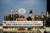 (성남뉴스) 연천군은 23일 오전 국회 소통관에서 기자회견을 열고, ‘수도권 내 인구감소지역 및 접경지역’에 대한 기회발전특구 운영(신청) 지침을 마련할 것을 강력히 촉구했다. 이번 기자회견은 지난 2023년 7월 시행된 '지방자치분권 및 지역균형발전에 관한 특별법'에 따라 수도권 내 인구감소지역도 기회발전특구 지정이 가능함에도, 2년이 넘도록 세부 지침이 마련되지 않아 신청조차 하지 못한 연천군의 절박한 목소리를 전달하기 위해 마련됐다. 정부는 지방 우대 원칙으로 수도권보다는 비수도권을, 비수도권보다는 인구감소지역을 우대하는 정책을 국정 전반에 걸쳐 추진하고 있음에도, 인구감소지역인 연천군은 수도권에 지리적으로 속한다는 이유로 지방 우대 정책에서 일부 배제되고 있다. 비수도권은 그간 55개 기회발전특구가 지정돼, 약 33조 원 규모의 투자가 진행되면서, 지역경제 활성화 토대를 마련하고 있다. 특히, 지난 5일에 고시한 5차 추가 지정에 부산, 울산 지역은 이미 특구가 지정됐음에도 재지정됐다. 연천군은 기회발전특구 지정을 통해 지방소멸 위기를 극복하고자, 연천 BIX 산업단지를 그린바이오와 첨단 산