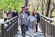 의정부시는 4월 7일 ‘추동 숲정원’ 조성 현장을 방문해 추진 현황을 점검하고, 지역 주민의 의견을 수렴했다. 능골 무장애길 입구부터 하늘마당, 잣나무쉼터, 물놀이장까지 약 6.0km 구간을 따라 현장을 확인하며 건의사항을 청취했다. 추동 숲정원은 약 22만 평 규모의 추동공원을 도심 속 생태 공간이자 산림휴양 공간으로 조성하는 사업이다. 현재 42.2ha 규모의 숲가꾸기와 8.8km 구간의 숲길 정비, 과학도서관 및 물놀이장 입구와 테마정원 조성을 완료했다. 하늘마당과 잣나무쉼터, 순환산책로(무장애길 1.4km, 숲둘레길 2.7km) 조성사업은 착공해 올해 상반기 준공을 목표로 추진 중이다. 특히 공원 정상부인 효자봉에 들어설 ‘하늘마당’은 주변 경관을 한눈에 조망할 수 있는 전망 공간으로 조성할 계획으로, 일출‧일몰을 감상할 수 있는 장소로 활용될 전망이다. ‘잣나무쉼터’는 잣나무와 전나무 숲 속에 목재 데크와 해먹 등을 설치해 시민들이 자연 속에서 온전히 쉴 수 있는 힐링 공간으로 꾸밀 예정이다. 시는 현장 관리와 안전 확보를 위해 해빙기 숲길 토사 유출 여부와 식재