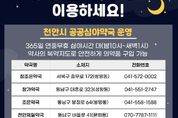 (성남뉴스) 천안시는 공공심야약국을 5개소로 확대 운영한다고 12일 밝혔다. 시는 심야 시간대 의약품 구입 불편을 해소하기 위해 오후 10시부터 오전 1시까지 공공심야약국을 지정·운영하고 있다. 시는 올해 국비를 추가 확보함에 따라 공공심야약국 1개소를 추가 지정했다. 공공심야약국은 △참조은약국(쌍용동) △창가약국(성황동) △조은약국(봉명동) △천안제일약국(문화동) △밝은약국(신부동)이다. 공공심야약국은 설 연휴에도 휴무없이 운영하며, 약사의 복약지도에 따라 안전하게 의약품을 구입할 수 있다. 이현기 서북구보건소장은 “공공심야약국 확대 운영을 통해 시민들의 심야시간대 의약품 접근성이 한층 강화될 것으로 기대한다”며 “앞으로도 공공심야약국을 지속적으로 확대해 나갈 것”이라고 말했다.
