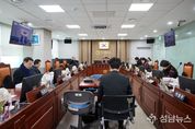 (성남뉴스) 음성군의회는 10일, 의회 소회의실에서 2월 정례의원 간담회를 개최했다. 이날 간담회는 ▲음성군 행정기구 설치 조례 일부개정조례안, ▲금왕읍 도시재생사업 공유재산 변경 취득안 등 조례안 2건과 동의안 1건에 대하여 논의하고, 지역 현안에 대하여 의견을 공유, 소통하는 시간을 가졌다. ▲음성군 행정기구 설치 조례 일부개정 조례안은 대소면 성본산업단지 출장소를 신설하기 위해 읍ㆍ면 출장소 규정을 정비하려는 것으로 변화하는 행정수요에 능동적으로 대응할 수 있을 것으로 기대되며, ▲금왕읍 도시재생사업 공유재산 변경 취득안은 금왕읍 무극리 190-1번지 일원 공유재산을 취득해 도시재생 거점시설을 조성하기 위한 것으로 주민 편의 증진과 지역 정주 여건 개선에 기여할 것으로 전망된다. 한편, 제386회 임시회는 2월 19일 본회의장에서 개회한다.