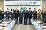 (성남뉴스) 대구시의회 경제환경위원회는 제323회 임시회 기간인 3월 12일, 대구정책연구원 내 위치한 ‘대구탄소중립지원센터’를 방문해 지역 기후 위기 대응 및 탄소중립 이행 상황을 점검하고 2050 탄소중립의 차질 없는 실현을 위한 체계적인 업무 추진을 주문했다. ‘대구탄소중립지원센터’는 대구시의 탄소중립·녹색성장 기본계획 수립 지원, 온실가스 통계 분석, 기후 위기 적응 대책 이행 지원 등을 수행하기 위해 '탄소중립기본법'에 근거해 2022년 7월에 설립된 기후·환경 부문 전문 연구기관으로, (재)대구정책연구원이 그 운영 업무를 수탁해 각종 사업을 추진 해오고 있다. 센터를 방문한 위원들은 남광현 센터장으로부터 센터 추진 사업 실적 및 향후 운영 계획에 대한 브리핑을 듣고, 대구시 및 센터 관계자들과 함께 실효성 있는 탄소중립 정책 추진 방안을 논의하는 시간을 가졌다. 특히 올해부터 새롭게 시작된 재수탁 기간(‘26. 1. 1.~‘28. 12. 31.) 동안의 센터 운영 로드맵과 국·시비 예산(연간 4억 원)의 집행 효율성 등에 대해서도 면밀히 살폈다. 김재용 위원장은 “전 세계적으로 탄소중립은