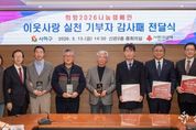 (성남뉴스) 부산 사하구는 부산사회복지공동모금회(회장 이수태)와 지난 13일 '희망2026나눔캠페인 이웃사랑 실천 기부자 감사패 전달식'을 개최해 지역사회 나눔을 실천한 기부자들에게 감사의 뜻을 전했다고 밝혔다. 이날 전달식에서는 사회복지법인 호산나복지재단, 재단법인 서원나눔, 항도레미콘(주) 등 3개 법인과 ㈜세윤식품 대표 김영수, 행복을짓는수향촌밥상 등 개인 2명, ㈜강남 직원 단체 1곳에 감사의 뜻을 전했다. 법인에는 나눔 현판을, 개인 및 단체에는 감사패를 전달하며 지역사회 나눔 실천에 기여한 공로를 기렸다. 박선욱 부산사회복지공동모금회 사무처장은 “희망나눔캠페인에 따뜻한 마음으로 함께해 주신 기부자 여러분께 깊이 감사드린다”며 “여러분의 관심과 참여가 지역사회 나눔문화를 더욱 풍성하게 만들고 있으며, 앞으로도 이러한 따뜻한 나눔이 계속 이어지기를 기대한다”고 소감을 밝혔다. 사하구 관계자는 “사하구를 위해 뜻깊은 나눔을 실천해 주신 기부자 여러분께 진심으로 감사드린다”며 “여러분의 소중한 정성이 사하구 곳곳의 어려운 이웃들에게 큰 힘이 되고 있으며, 지역사회에 따뜻한 변화를 만들어 가고 있다”고 감사의