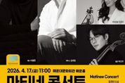 해운대문화회관은 17일 오전 11시 해운홀에서 ‘마티네 콘서트’를 개최한다. ‘한국 가곡, 마음에 피다’를 부제로 한국인의 정서와 삶의 이야기를 아름다운 선율에 담아낸 가곡으로 관객들에게 감동과 여유를 선사한다. 연주곡은 ‘별 헤는 밤’,‘뱃노래’,‘삶이 그대를 속일지라도’ 등 오래 사랑받은 곡이다. 테너 이명현, 베이스 김대영과 바이올린 태선이, 첼로 박건우, 피아노 이가연이 깊이 있는 해석과 풍부한 표현력으로 작품의 매력을 선보일 예정이다. ‘마티네 콘서트’는 오전에 진행하는 공연으로, 바쁜 일상에서 부담 없이 문화예술을 즐길 수 있도록 올해 새롭게 기획했다. 8세 이상, R석 2만 원, S석 1만 원으로 예매는 해운대문화회관 홈페이지에서 하면 된다.