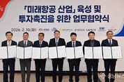 (성남뉴스) 대한민국 미래항공산업 핵심 거점으로 비상 채비를 서두르고 있는 충남 태안 천수만에 항공·방산·우주 분야 글로벌 기업들이 응원군으로 떴다. 김태흠 지사는 10일 태안문화예술회관에서 성일종 국회의원, 이정석 국방과학연구소 부소장, 대한항공·LIG넥스원·한국항공우주산업(KAI)·한화에어로스페이스 등 4개 참여 기업 관계자가 참석한 가운데 미래항공 산업 육성 및 투자 촉진을 위한 업무협약을 체결했다 이번 협약은 태안 천수만 B지구 일원에 건립 추진 중인 국방미래항공연구센터 연계 기업 지원 인프라를 토대로, 미래항공산업 전략적 거점을 육성하고, 지역 신성장동력 창출을 위해 상호 협력하기 위해 맺었다. 협약 기관 및 기업은 우선 △국방미래항공연구센터 등 연구 및 기업 지원 인프라 조성 △중앙·지방정부 및 기업의 원활한 사업 추진을 위한 각종 협력 △공공·민간 투자 예산 확보 등에 힘을 모으기로 했다. 이와 함께 도는 국방미래항공연구센터 연계 특화산업단지 조성, 교통 등 정주여건 개선 및 안정적인 용수·전력 공급 등 기업 유치 기반 구축, 기업 투자 활동에 대한 행·재정적 지원에 나선다. 국방과학연