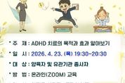 서울 도봉구가 오는 4월 23일 오후 7시 30분 아동‧청소년 보호자와 관계 기관 종사자를 대상으로 주의력결핍 과잉행동장애(ADHD) 온라인 교육(ZOOM)을 진행한다. 이번 교육은 동작아이존 양지윤 센터장이 맡아 진행한다. 교육에서 양 센터장은 주의력 결핍 및 과잉 행동장애의 증상, 증상 관리 및 치료 방법, 자녀 양육을 위한 노하우 등을 상세히 설명할 예정이다. 교육 신청은 강의 시작 전까지 도봉구 정신건강복지센터 누리집에서 가능하다. 자세한 내용은 도봉구 지역보건과 정신건강복지센터로 문의하면 된다.