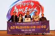 (성남뉴스) 순천시는 대표 문화관광축제인 ‘순천 푸드앤아트페스티벌’이 24일 서울 용산구 피스앤파크 컨벤션에서 열린 ‘제14회 대한민국축제콘텐츠대상’ 시상식에서 문화·예술 부문 대상을 수상했다고 밝혔다. 대한민국축제콘텐츠대상은 축제 산업의 글로벌 경쟁력 강화를 위해 (사)한국축제콘텐츠협회가 주관하는 시상식으로, 축제 콘텐츠의 독창성과 완성도 및 지역 기여도 등을 평가해 우수 축제를 선정해왔다. 순천 푸드앤아트페스티벌은 그간의 꾸준한 성과를 바탕으로 문화·예술 콘텐츠를 혁신적으로 강화한 점을 높게 평가받으며 대상의 영예를 안았다. 이번 수상은 거리 곳곳에서 펼쳐진 미술·공연·전시·체험 프로그램을 대폭 확대해 시민과 관광객의 참여를 이끌어낸 점이 주효했다. 특히 중앙로 곳곳에서 펼쳐진 스토리형 마임과 서커스 공연은 관객과의 즉흥적 호흡과 현장 참여를 유도하며, 단순히 ‘보는 행사’에서 ‘함께 만드는 참여형 문화예술행사’로 축제의 지평을 확장시켰다는 평가다. 또한 국립한글박물관과의 협업으로 선보인 ‘사투리 이야기 콘서트’는 전남 방언의 독특한 정서를 지역 고유의 문화자산으로 재조명함과 동시에, 언어와 생