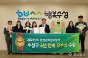 (성남뉴스) 대구 수성구는 지난 24일 대구시가 주관하는 ‘2025년도 환경관리업무 평가’에서 4년 연속 우수상을 수상했다. 이번 평가는 대구시 9개 구·군을 대상으로 2025년 한 해 동안 추진한 환경정책, 기후대기, 수질개선 등 총 28개 항목의 환경관리 업무 추진 실적을 종합적으로 평가해 우수기관을 선정하는 방식으로 진행됐다. 수성구는 용학도서관 기후환경교육 우수도서관 지정, 생태관광 투어 등 다양한 환경교육 프로그램 운영, 녹색제품 구매 실적, 수질오염물질 배출사업장 관리, 자연환경 보전을 위한 망월지 생태축 복원사업 추진 등 다양한 분야에서 성과를 인정받았다. 김대권 수성구청장은 “탄소중립을 통해 기후변화에 적극 대응해야 하는 중요한 시기에 4년 연속 우수기관으로 선정돼 뜻깊다”며 “올해도 환경관리 분야 및 자연환경 보전사업을 내실 있게 추진해 쾌적하고 살기 좋은 수성구가 되도록 최선을 다하겠다”고 말했다.