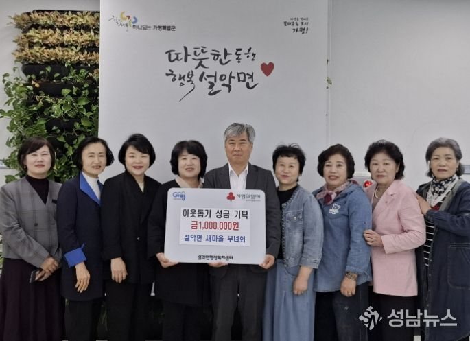 가평군 설악면 새마을부녀회 회원들은 최근 설악면 행정복지센터를 찾아 관내 취약계층을 위한 이웃돕기 성금 100만원을 기탁했다.
