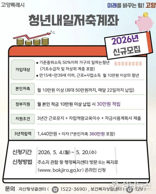 고양특례시는 5월 4일부터 시작하는 청년내일저축계좌 신규 가입자 모집을 앞두고, 가입 독려에 나섰다.