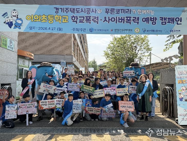 이날 캠페인에는 GH 임직원을 비롯해 수원시교육청 장학사, 이의초 교직원 및 학부모회, 학생, 푸른나무재단 관계자가 함께했다. 참가자들은 등교하는 학생들에게 사이버폭력 예방 스티커와 기념품을 나눠주며 비폭력 문화 확산을 위한 메시지를 전달했다.