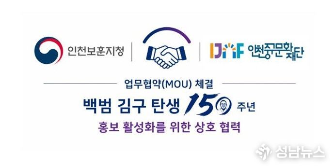 국가보훈부 인천보훈지청과 인천중구문화재단이 4월 27일 ‘백범 김구 탄생 150주년 홍보 활성화를 위한 업무협약(MOU)’을 체결했다.