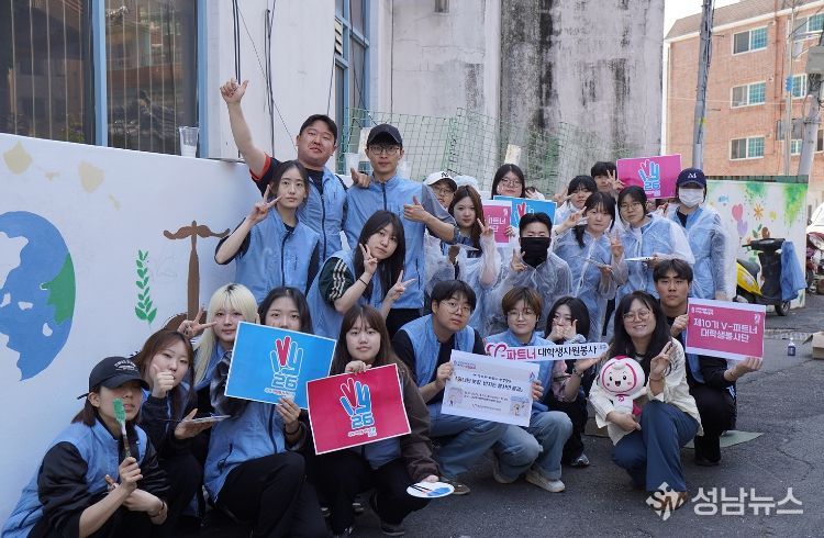 ‘V-road(자원봉사 벽화길)’는 담장과 골목 등 낙후된 생활공간에 자원봉사 정신을 담은 벽화를 조성해 안전한 환경을 만드는 사업이다. 이번 사업은 대구시자원봉사센터 인근 학교 앞 낡고 좁은 골목길을 대상으로 추진됐다.