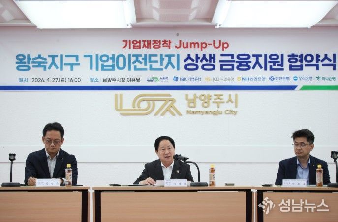 남양주시는 27일 왕숙신도시 개발로 이전이 필요한 기업의 안정적 재정착을 지원하기 위해 ‘왕숙신도시 기업재정착 점프업(Jump-up) 상생금융’ 업무협약을 체결했다고 밝혔다.