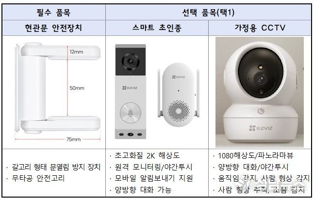 ‘은빛SOL 안심홈세트’는 기본 안전장치와 선택형 보안기기로 구성됐다. 선정자에게는 ▲현관문 안전장치를 기본 제공하며 ▲스마트초인종 ▲가정용 CCTV 중 1가지를 선택해 지원한다.