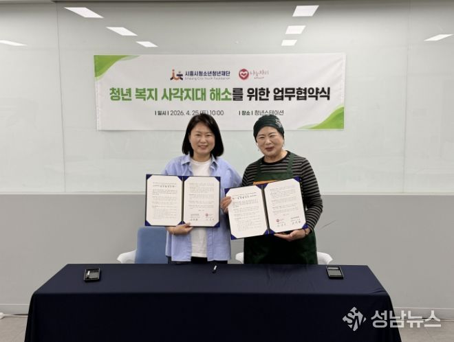 (재)시흥시청소년청년재단은 지난 4월 25일 나눔자리문화공동체와 지역의 청년 복지 사각지대를 해소하고 고립·은둔 청년 지원을 강화하기 위한 업무협약(MOU)을 체결했다고 밝혔다.