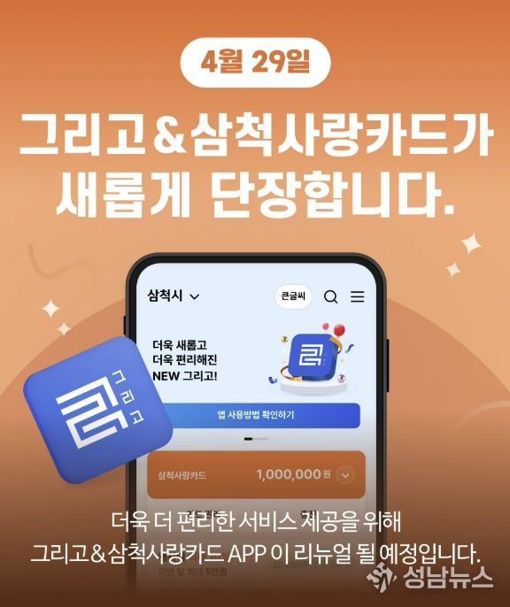 시 관계자는 “이번 앱 개편을 통해 시민들이 보다 쉽고 편리하게 삼척사랑카드를 이용할 수 있을 것으로 기대한다”라며 “앞으로도 시민과의 소통을 강화하고 지역 기반 디지털 플랫폼으로 지속 발전시켜 나가겠다”라고 밝혔다.