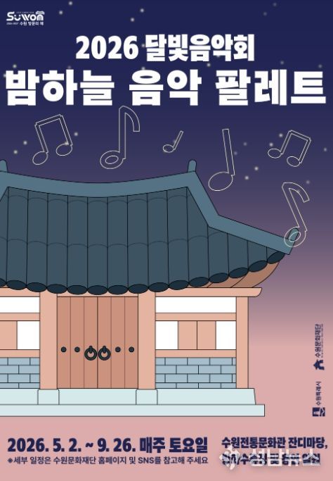 수원문화재단은 오는 5월부터 9월까지 국가유산과 자연, 음악이 어우러진 야간 공연 프로그램 '2026 달빛음악회 '밤하늘 음악 팔레트'’를 운영한다.