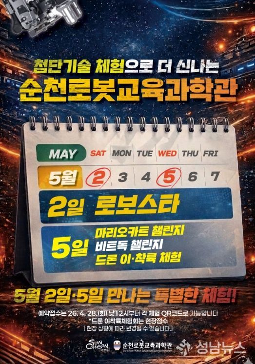 순천시 순천로봇교육과학관에서는 5월을 맞아 특별 과학프로그램을 운영한다. 이번 프로그램은 초‧중‧고 학생들이 다양한 과학을 체험하고 흥미를 키울 수 있도록 마련했다.