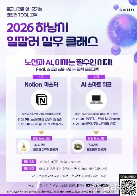 하남시는 관내 청년들이 현장에서 바로 활용할 수 있는 실무 역량을 키우고 또래 청년 간 교류 기회를 확대하기 위해 오는 5월부터 ‘2026년 하남시 일잘러 실무클래스’를 운영하고 1기와 2기 참여자를 모집한다고 밝혔다.