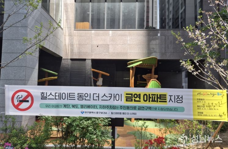 이번 지정에서는 힐스테이트 달성공원역 320세대 중 210세대(65.6%), 힐스테이트 동인 더 스카이 599세대 중 399세대(66.6%)가 동의해 금연 아파트로 지정됐다.