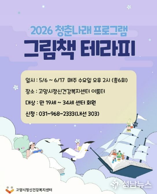 고양시정신건강복지센터는 청년들의 정서적 안정과 자기 이해를 돕기 위해 2026년 청춘나래 집단프로그램 ‘그림책 테라피’를 오는 5월 6일부터 운영한다.