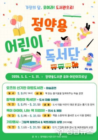 남양주시는 가정의 달을 맞아 5월 5일부터 31일까지 정약용도서관에서 ‘모여라! 정약용 어린이 독서단’ 행사를 운영한다고 28일 밝혔다.
