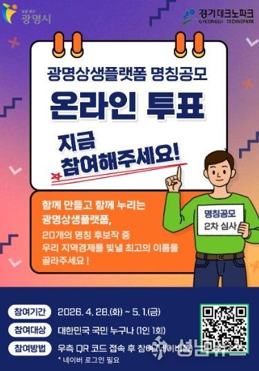 광명시청, 광명상생플랫폼, 경기테크노파크 누리집과 공식 사회관계망서비스(SNS) 채널에 게시된 링크를 통해 누구나 투표에 참여할 수 있다.
